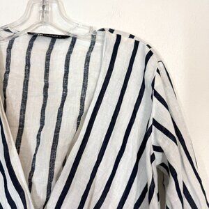 Zara Striped Linen Blend Wrap Blouse – Size Small