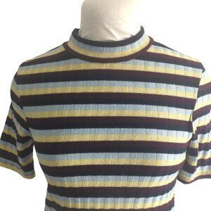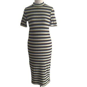 Zara Striped Metallic Ribbed Knit Midi Dress