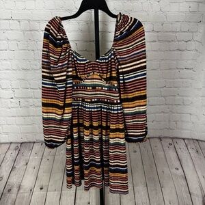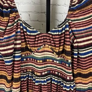 Zara Striped Pleated Balloon Sleeve Empire Waist Dress Size Medium