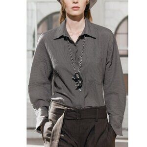Zara Striped Pocket Modal Long Sleeve Shirt Size Small