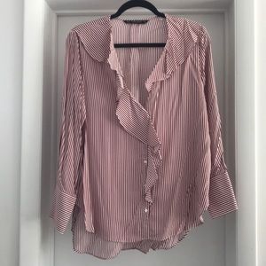 Zara Red Striped Ruffle Blouse **Like New (Only worn once!) Color: Red Size: M