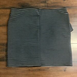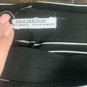Zara black and white striped mini skirt. Ruffle frill detail on front. Elastic waist. Unlined. Size medium.