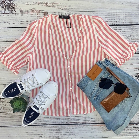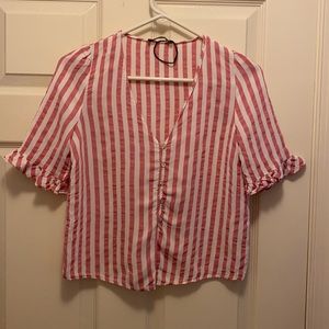 Zara Striped Ruffle Sleeve Top