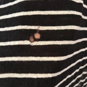Zara lightweight striped sweater with lace detailing on the sleeves. Small hole.