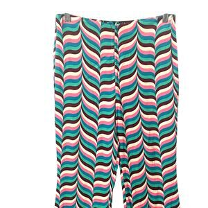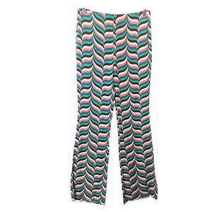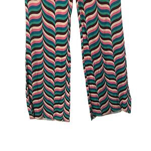 Zara Striped Wide Leg Pants Womens Medium Pink Teal Zig Zag Festival High Waist