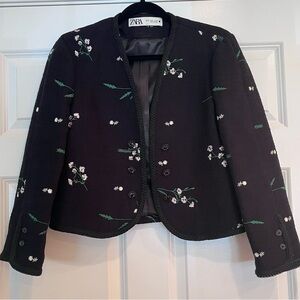 Zara Structured Embroidered Blazer Jacket Size Small Black Floral. Pristine preowned condition with no stains or tears. Ships quickly from my smoke free home.