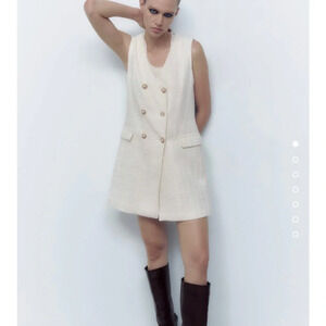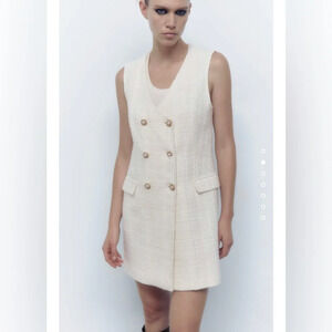 Zara Structured Long Vest Dress in Oyster White Size Small