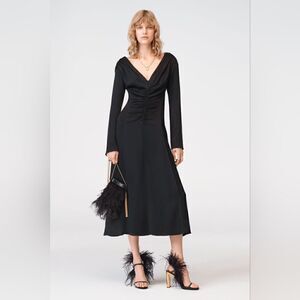Zara Studio Ruched pleat Long Dress Limited Edition V-neck long flared sleeves