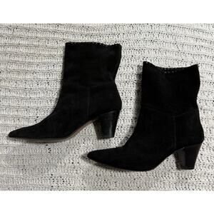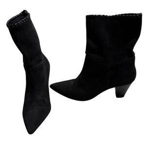 Zara Suede Boots Pointed Toe Womens Sz 8 EU 39 Black Pull On Leather Black 2340
