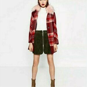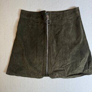 Zara Suede Zip Front Skirt Olive Green S #1428-4