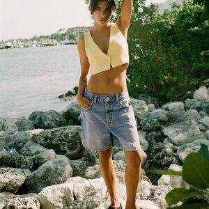 Zara Summer Edition The New Mid Rise Balloon Denim Bermuda Shorts Jeans Denim