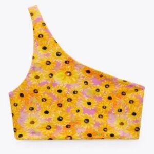 Zara Sunflower Floral pink & Yellow One-Shoulder crop tank Top small