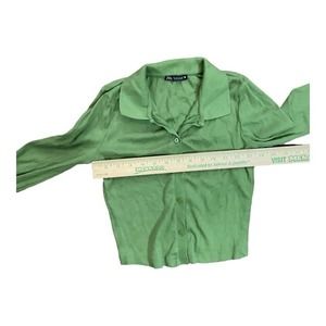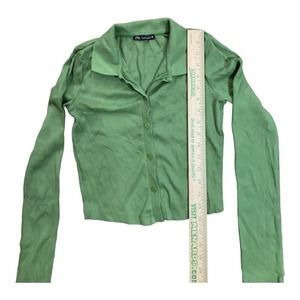 Add a touch of elegance to your wardrobe with this beautiful green cardigan sweater from Zara. Made specifically for women who love fashion, this sweater is perfect for both casual and formal occasions. The sweater is designed with a regular size type, making it comfortable and suitable for every body shape.