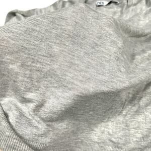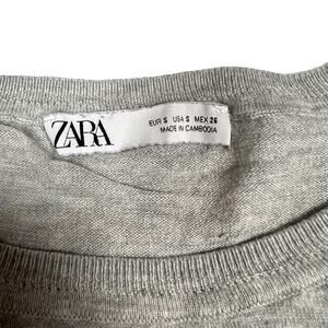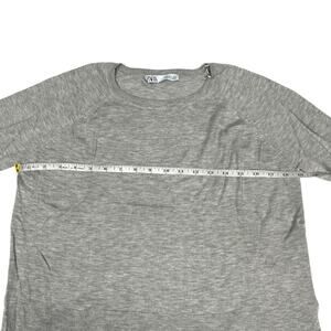 Zara Sweater Crop Grey Crew Neck Side Slit Long Sleeve Knit Pullover Women's S