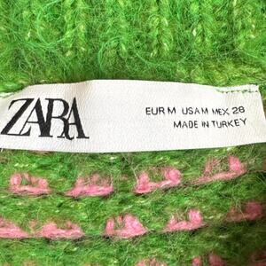 Zara sweater vest in green and pink with pink metal buttons. Size M. Cozy knit style with grandpacore, cottagecore, and boho vibes.