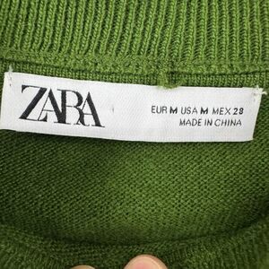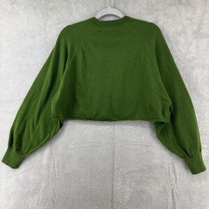 Zara Sweater Women M Green Knit Cropped Crew Neck Long Bishop Sleeve Relax Fit