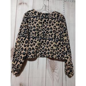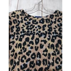 Zara Sweater Womens Medium Brown Black Leopard Print Long Sleeve Pullover Basic