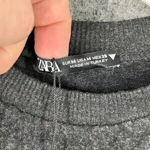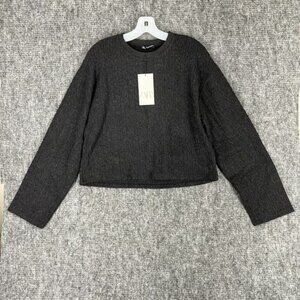 Zara Sweater Womens Medium Gray Ribbed Cropped Stretch Heavyweight Baggy NWT