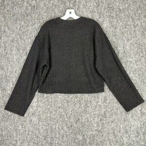 Zara Sweater Womens Medium Gray Ribbed Cropped Stretch Heavyweight Baggy