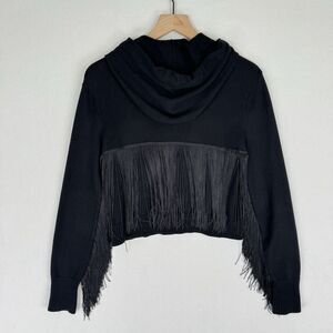 Zara Sweater Womens Small Black Chain Fringe Boho Western Soft Stretch Hoodie