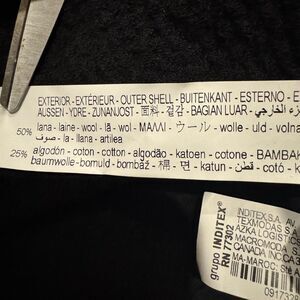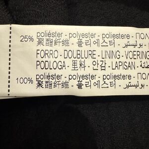 Outer shell material: 50% wool, 25% cotton; 25% Polyester lining: 100% polyester.