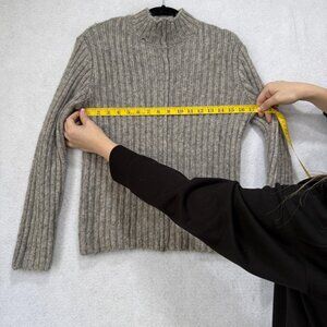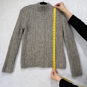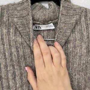 Zara Sweater Womens Small Gray Ribbed Mock Neck Wool Blend Pullover Long Sleeve