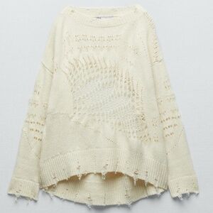 Zara Distressed sweater with tips. Ecru Color, Size M