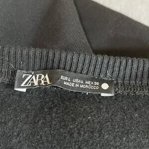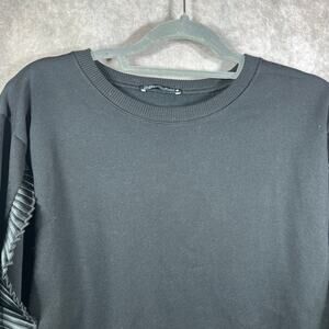 Zara Sweatshirt Womens Large Black Satin Ruffle Trim Sleeve Crew Neck Pullover