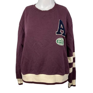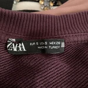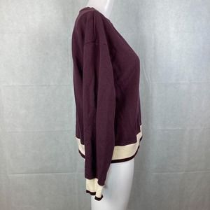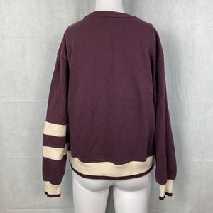 Zara Sweatshirt Womens Sz S Plum Cotton Ivory Stripes Letterman A Varsity