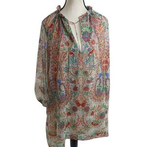 Zara Swim Cover Multicolor Long Sleeve Semi Sheer V Neck Lined Womens Size M