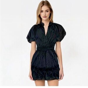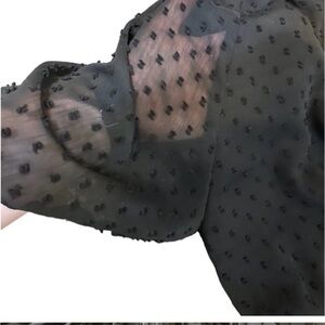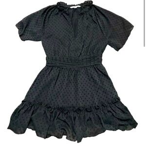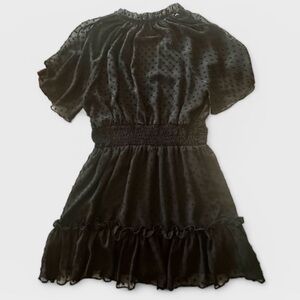 Zara Swiss Dot, Neck Ruffled, Sheer Sleeve, Mini Short Dress, Black, Size M