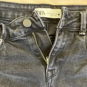 Zara Sz 6 Charcoal Washed Black Slim Flare Jeans Mid Rise Stretchy Raw Hem