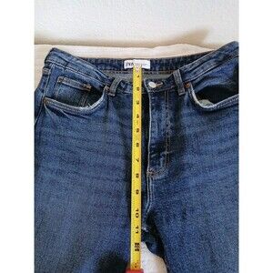 Zara Sz 8 Jeans High Rise Straight Leg High Waist Relax Light Wash Denim Raw Hem