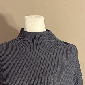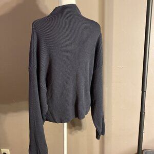 Zara Sz M Oversize Ribbed Crop Pullover Sweater Gray Dolman Sleeves Mock Neck