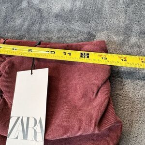 Zara Sz S Mini Skirt Ruched Corduroy Medium Burgundy Red Draped Ruffle Career