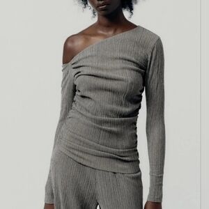Zara TEXTURED ASYMMETRICAL TOP Dark anthracite SMALL