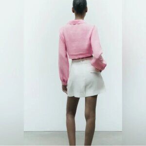 Zara TIED LINEN SHIRT Pink Color Size XS 100% linen