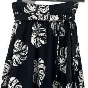 Zara TRAFALUC Black and White Botanical Print A-Line Skirt