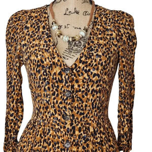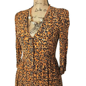 Zara TRF Animal Cheetah Print Pleated Shoulder Lined Jacket Dress Sz Small Maxi