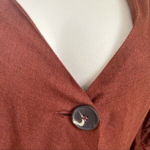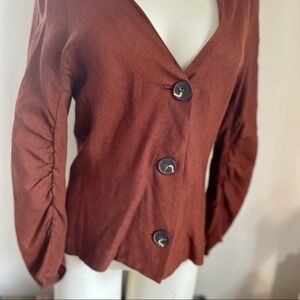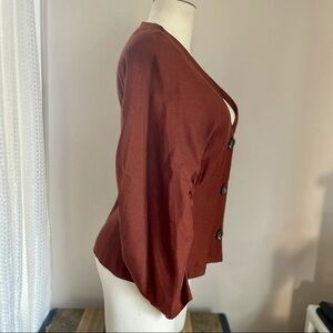 Fall in love with this stunning on trend rust orange brown colored button up top by Zara with ruched sleeves.