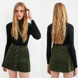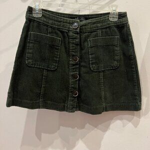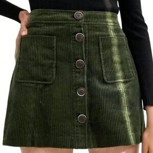 Zara TRF Dark Green Button-Down Corduroy Skirt