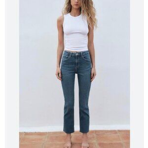 Zara TRF Flared Cropped High Waist Jeans Dark Wash Raw Hem Women’s Sz 8