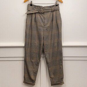 Zara TRF Plaid High-Waisted Paperbag Pants with Belt – Size S/26, Classic Chic