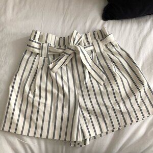 Zara TRF Pleated Belted High Waist Paper Bag Shorts White Striped Size XS New