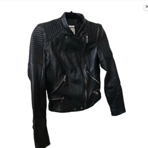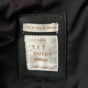Zara TRF Quilted Motorcycle Black Crop Sheep Leather Silver Zip Size M Jacket.