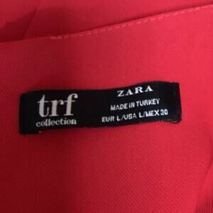 Zara TRF Red Short Cap Sleeve V Neck Silver Zipper Wide Swing Mini Dress Size L