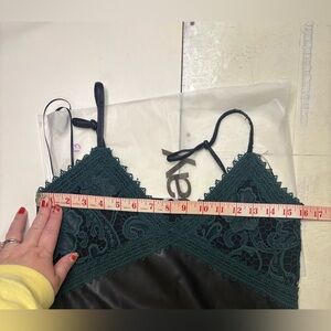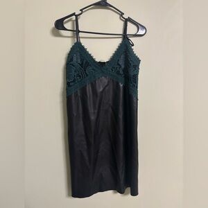 Zara TRF Slip Faux Leather Mini Dress Size Small Green Lace