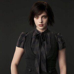 Zara Trafaluc Tweed Vest Waistcoat. A different release of the extremely popular vest seen on Alice Cullen in Twilight New Moon (2009). The same cut, but with normal buttons instead of the star ones. Brown rather than dark gray. Runs very small, so if unsure ask for measurements. Might want to size up.