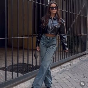 Zara TRF WIDE LEG BUCKLE JEANS