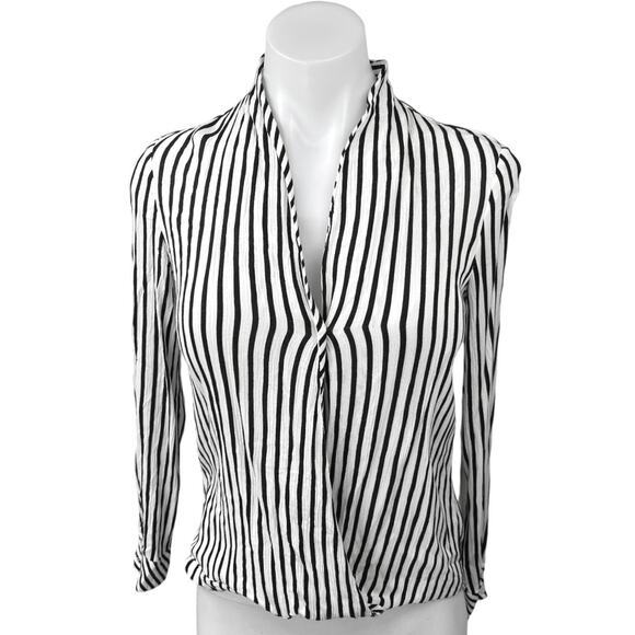 Zara TRF White Black Striped Faux Wrap V-neck Long Sleeve Blouse Top Size XS